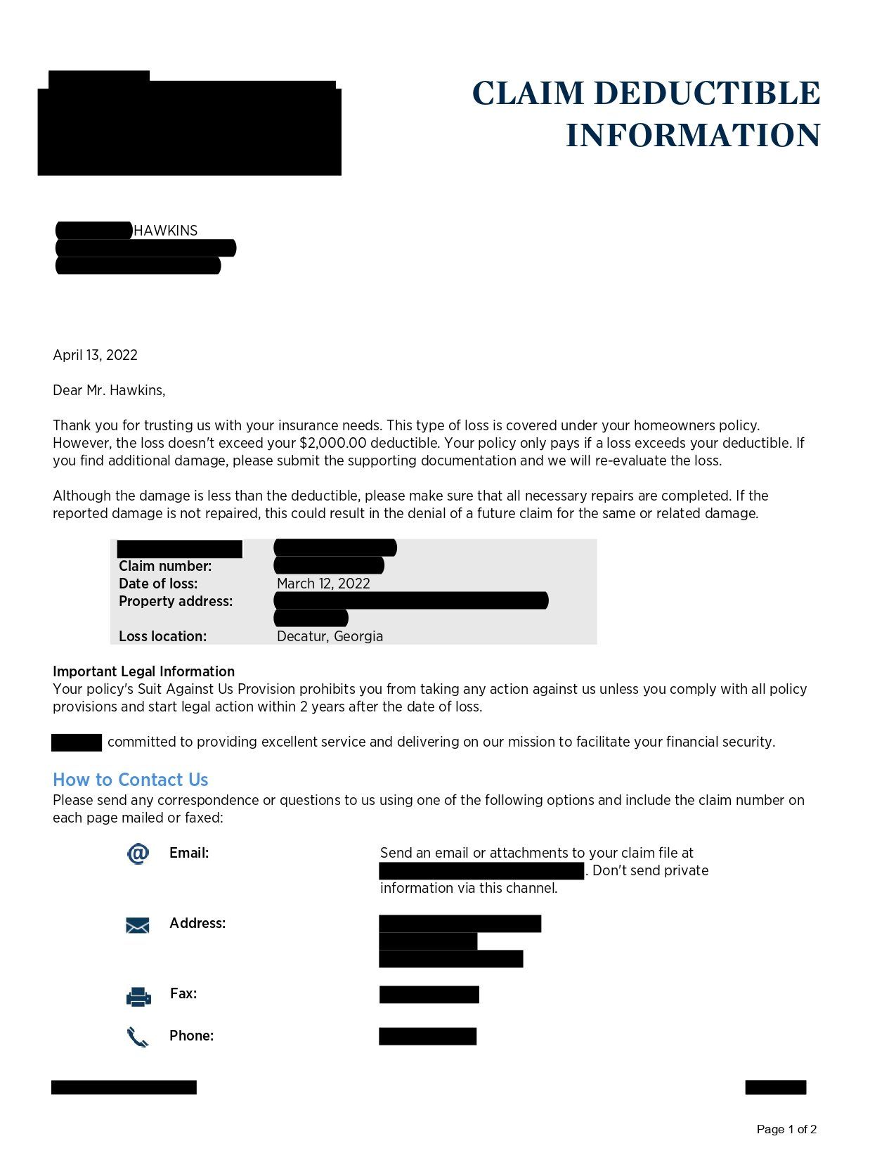 - We will maintain an open line of communication with our customer to assure they are aware of all aspects of their claim through the whole process.